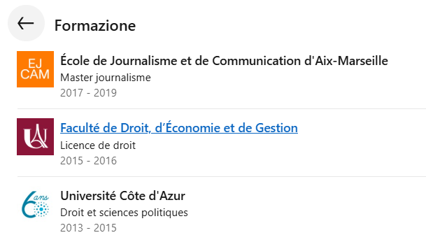 Scuola di Giornalismo a Aix-Marseille, ma prima tanti studi universitari di Diritto.