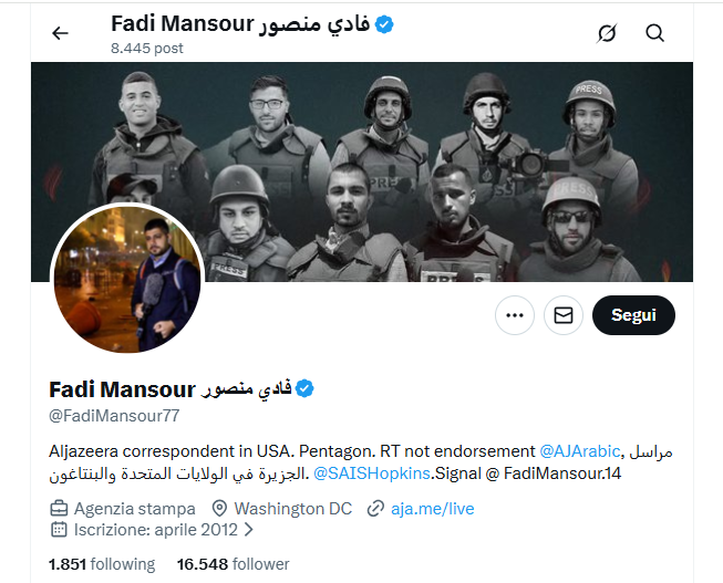 Fadi Mansour dal lontano 2006 è corrispondente dagli Stati Uniti per Al Jazeera, ed è sicuramente considerato una delle figure di spicco tra tutti i giornalisti dei media arabi.