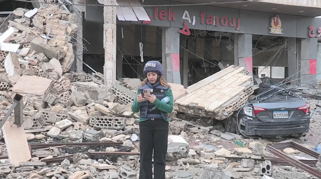 Joyce El Hajj Khoury è una famosa giornalista televisiva libanese, coraggiosa corrispondente di guerra per l’emittente Al Araby.