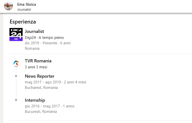 Attività recenti: Ha partecipato alla copertura di eventi importanti. Ad esempio, nell’ottobre 2025, ha condotto una corrispondenza speciale da Odessa, in Ucraina, sugli attacchi russi e sulla visita del Presidente della Romania.