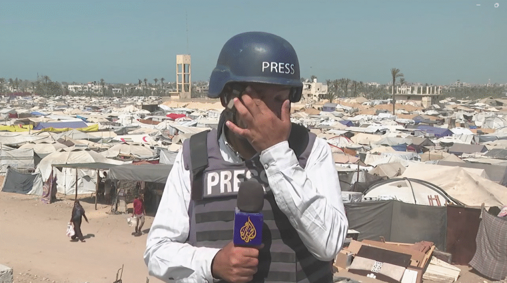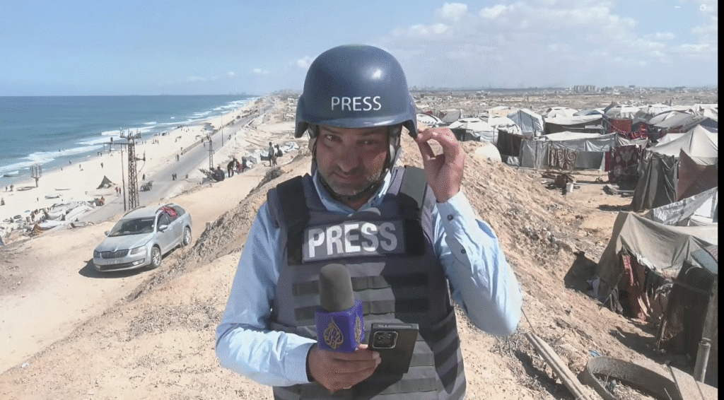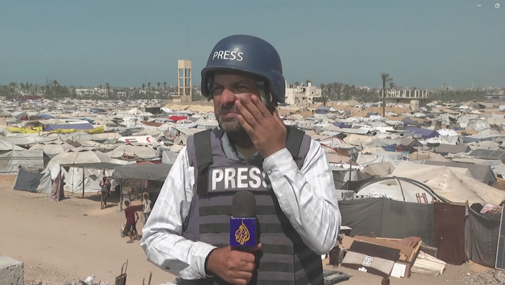 Insieme ai suoi colleghi della coraggiosa squadra di Al Jazeera, segue quotidianamente (anche mentre scriviamo il 25 novembre 2025) ciò che succede a Gaza. Ancora oggi è sempre in prima linea.