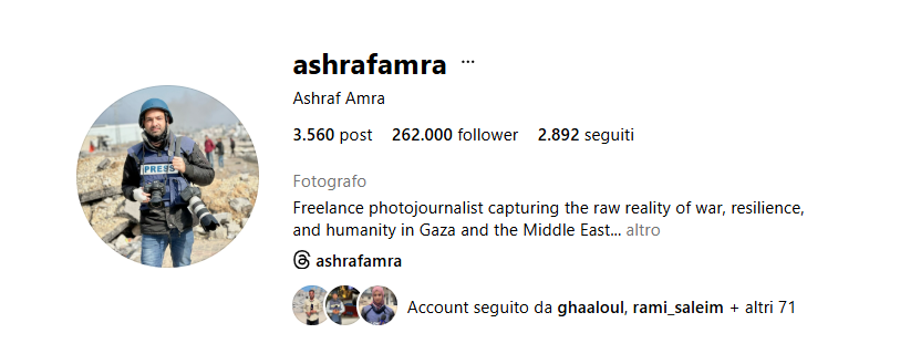 Ashraf Abu Amra ha iniziato la sua carriera nel fotogiornalismo, mentre viveva a