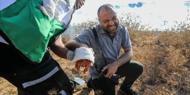 grande fotoreporter, già gravemente ferito a una mano dal fuoco dell’esercito israeliano nel 2023.
