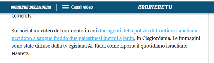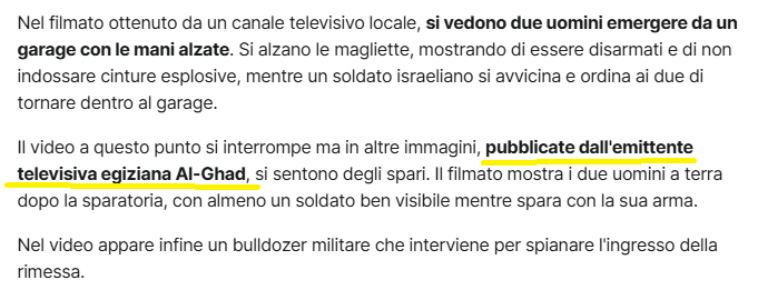 Il video dell’esecuzione sommaria di Jenin-lo ribadiamo- è stato realizzato e diffuso dall’emittente Egiziana Al Ghad Tv e Palestine Channel (e non da altri, se non successivamente).,