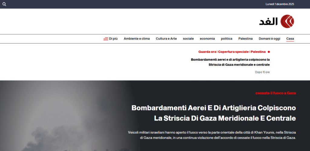 Mentre Euronews, come abbiamo visto sopra cita correttamente Al Ghad Tv e anche Palestine Channel, i media italiani su questo episodio citano invece un’altra televisione egiziana sostituendo ad Al Aghad con Al Raid.