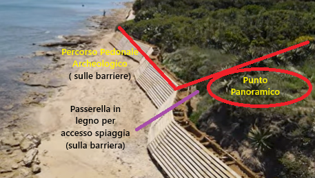 Per la valorizzazione del sito archeologico occorre puntare su un percorso pedonale da realizzarsi in gran parte vista a mare sopra l’opera di mitigazione di erosione realizzata negli anni scorsi.