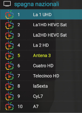 Sono ricevili tutti i principali canali generalisti: da LA 1 e La 2 (tv pubblica) a tutti i generalisti privati: Antena 3, Cuatro, Telecinco e La Sexta.